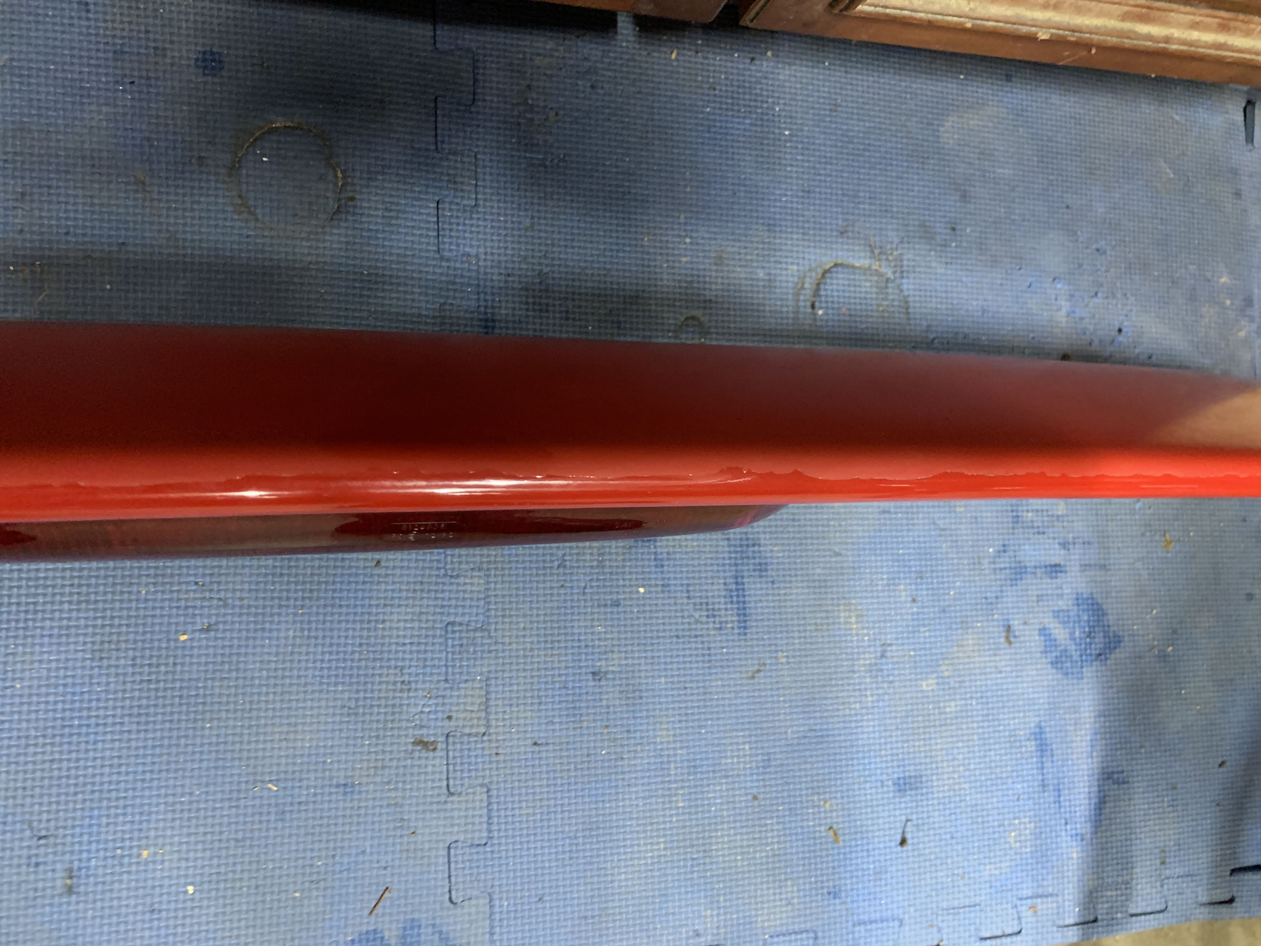 It appears it was clear coated at some point, and it is a little faded on top. I tested a small spot of rubbing compound as you can see, and it should polish out nicely. Otherwise, it looks pretty good.
