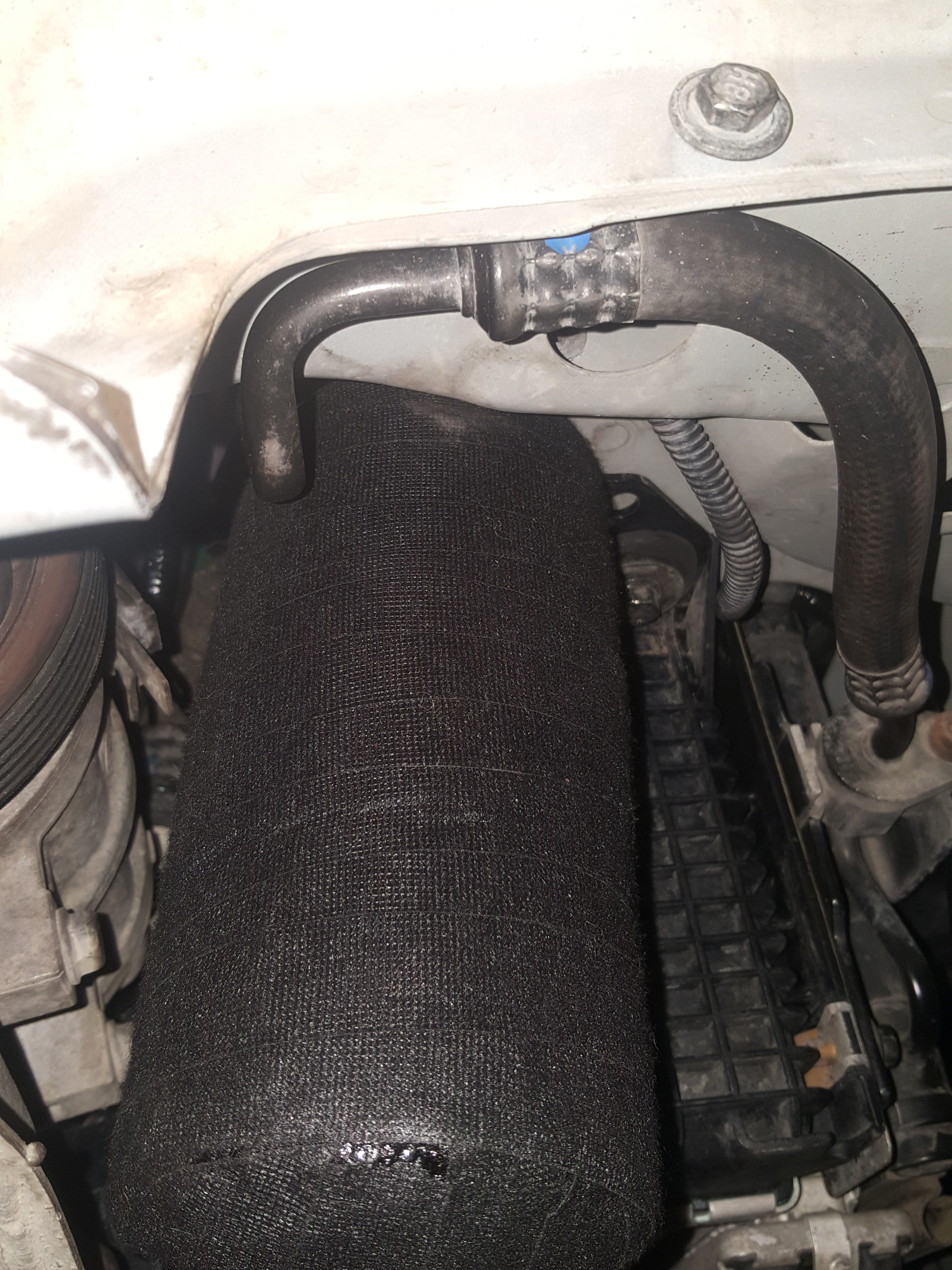 Ok, here are the images,this was a slow tedious pain and having OCD does not help. At least now when we use the AC on really hot days it will not work the AC so hard since the sweating from cold lines will be at a minimum. I used cork cold wrap tap to insulate the lines then went over it more or less to make it look nicer with TESA 51608 ISOBAND adhesive cloth wrap to help insulate it and clean up the appearance a bit. I also wrapped the receiver/drier with the same method.