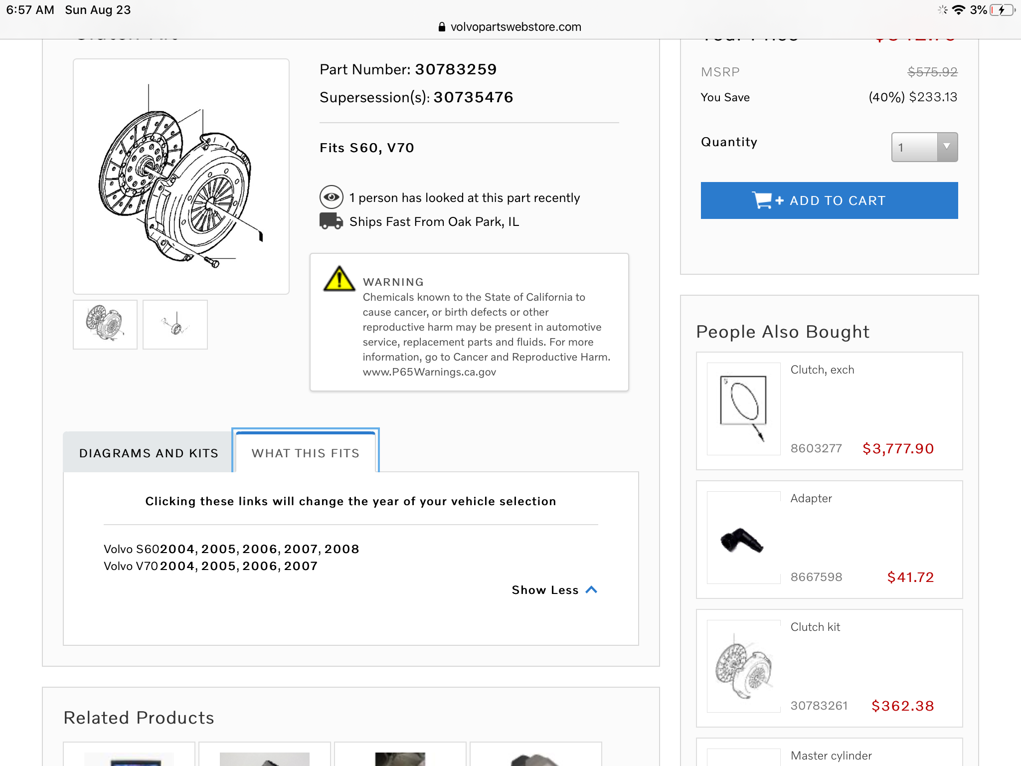 S60 '05 T5, FWD, manual clutch kit to R's one.