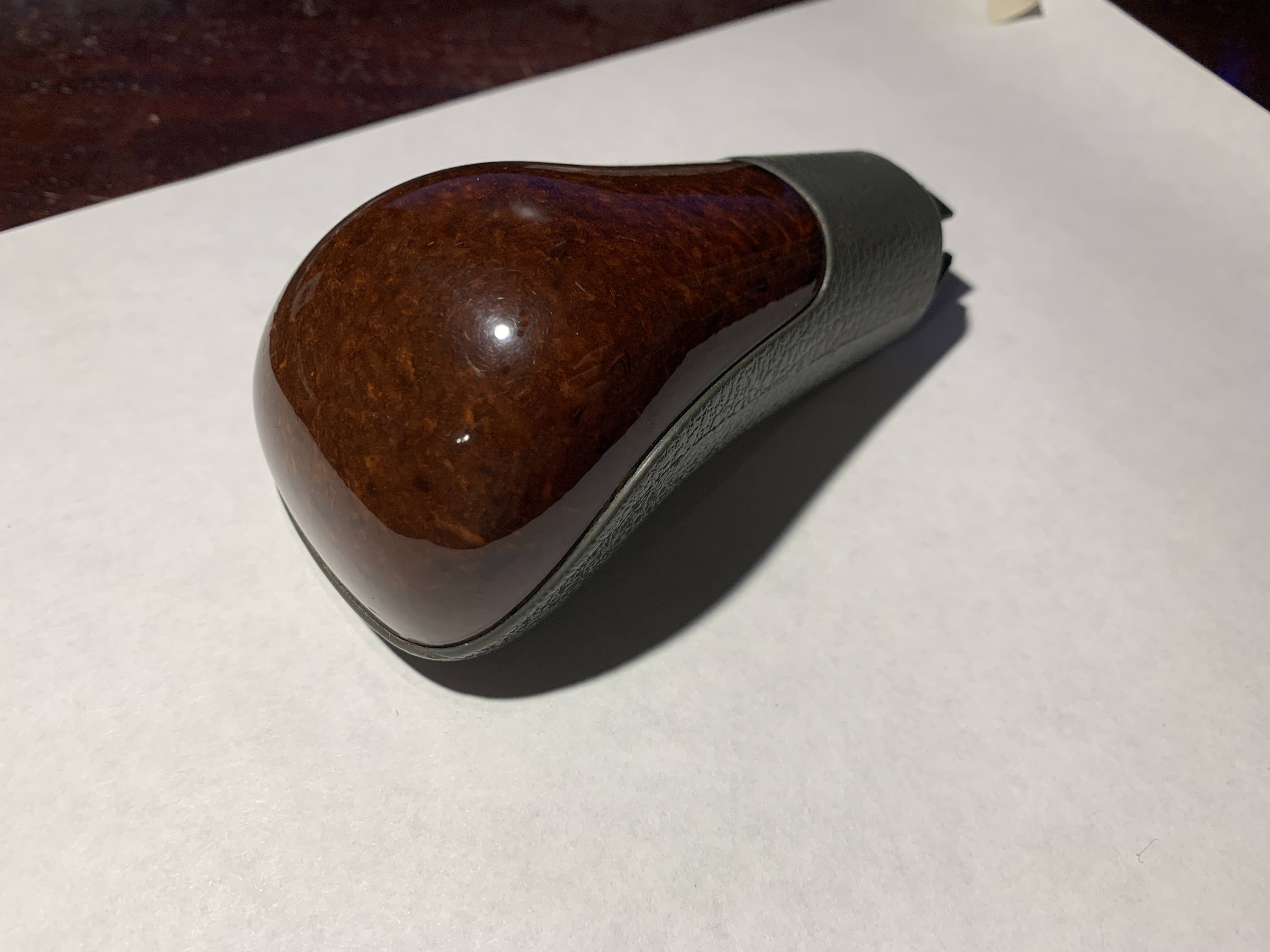 Nice wood grain shift knob. Button has typical cracking, but works just fine. This looks like the darker wood, not quite cherry red but not the "walnut". It was removed from a 2000 S70 SE.