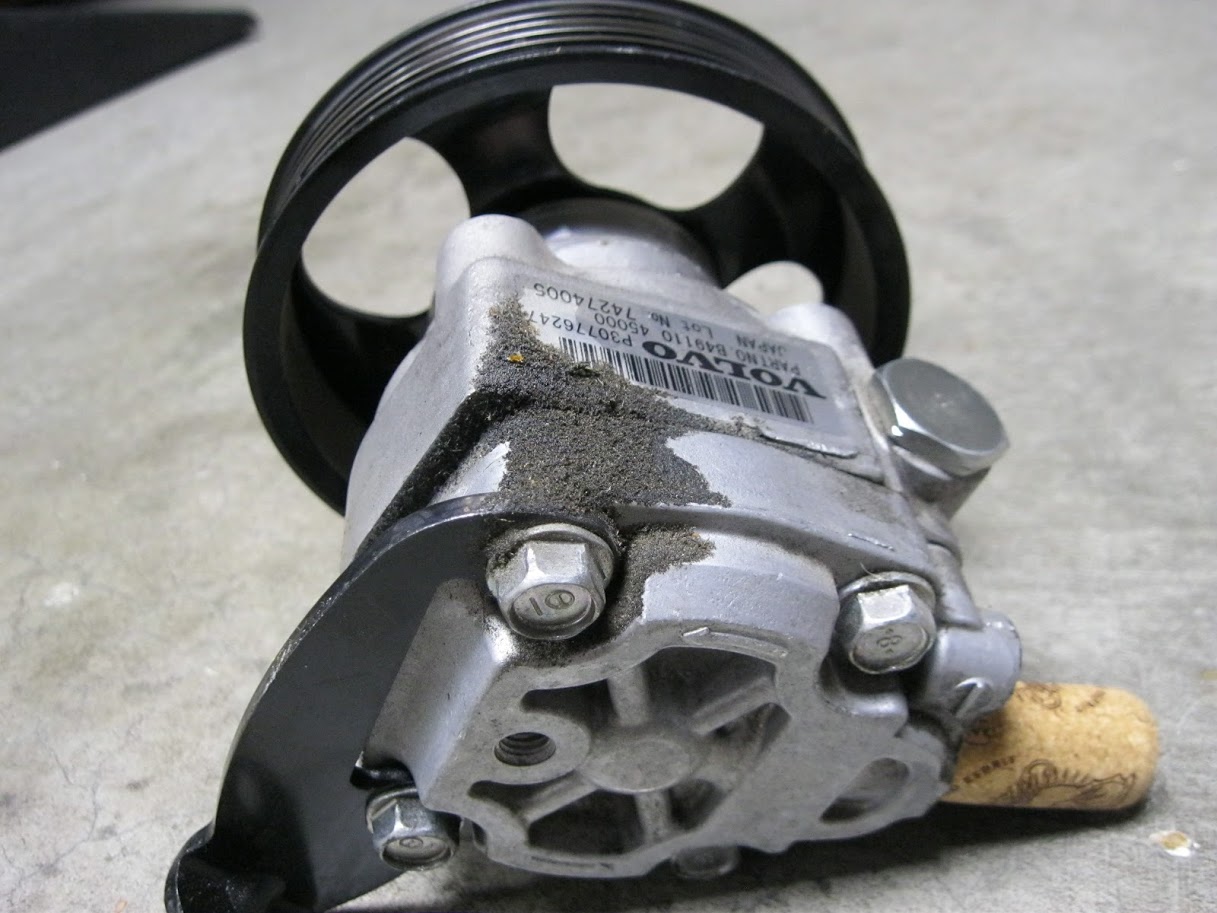 Sad part about the power steering pump, it's not going to stop seeping and you'll need to pull the belt (tensioner) again to replace. Can see photo for where it starts, drips out the front of the engine under the pump and makes a mess but eventually runs to the rear of the engine through the valley, confusing the source of the leak. One truth about the Volvo V8 in my opinion, sooner or later you'll replace the pump. Mine started seeping at 125k miles.