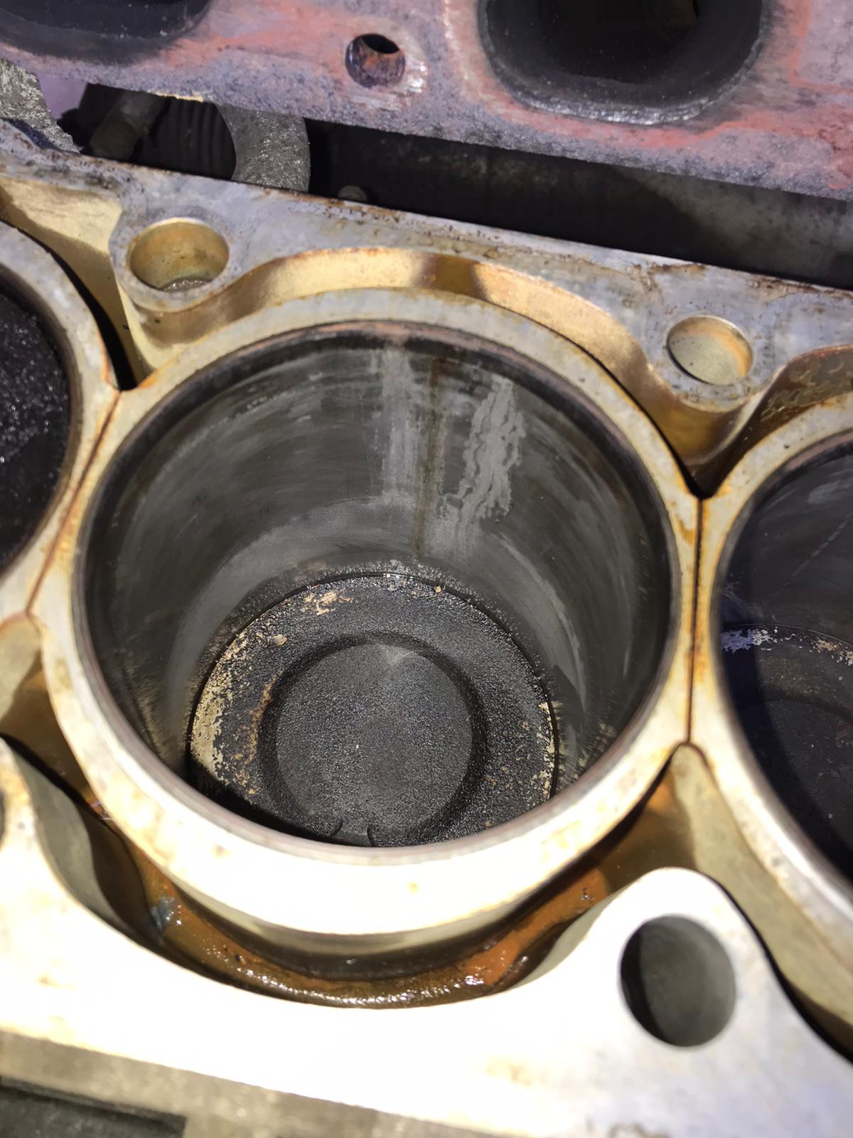 What I found is best told in the pictures below. The oil contains a LOT of water as can be seen in the last picture. My question is mainly what do you guys think about those cylinder walls? Are those scars from coolant? I can lighly feel them with my nails when scratching the cylinder wall. Can those be cleaned out with some scoth-brite green or is this really bad? Before I get the head checked for cracks I would like to know if this engine is still worth it. Thanks