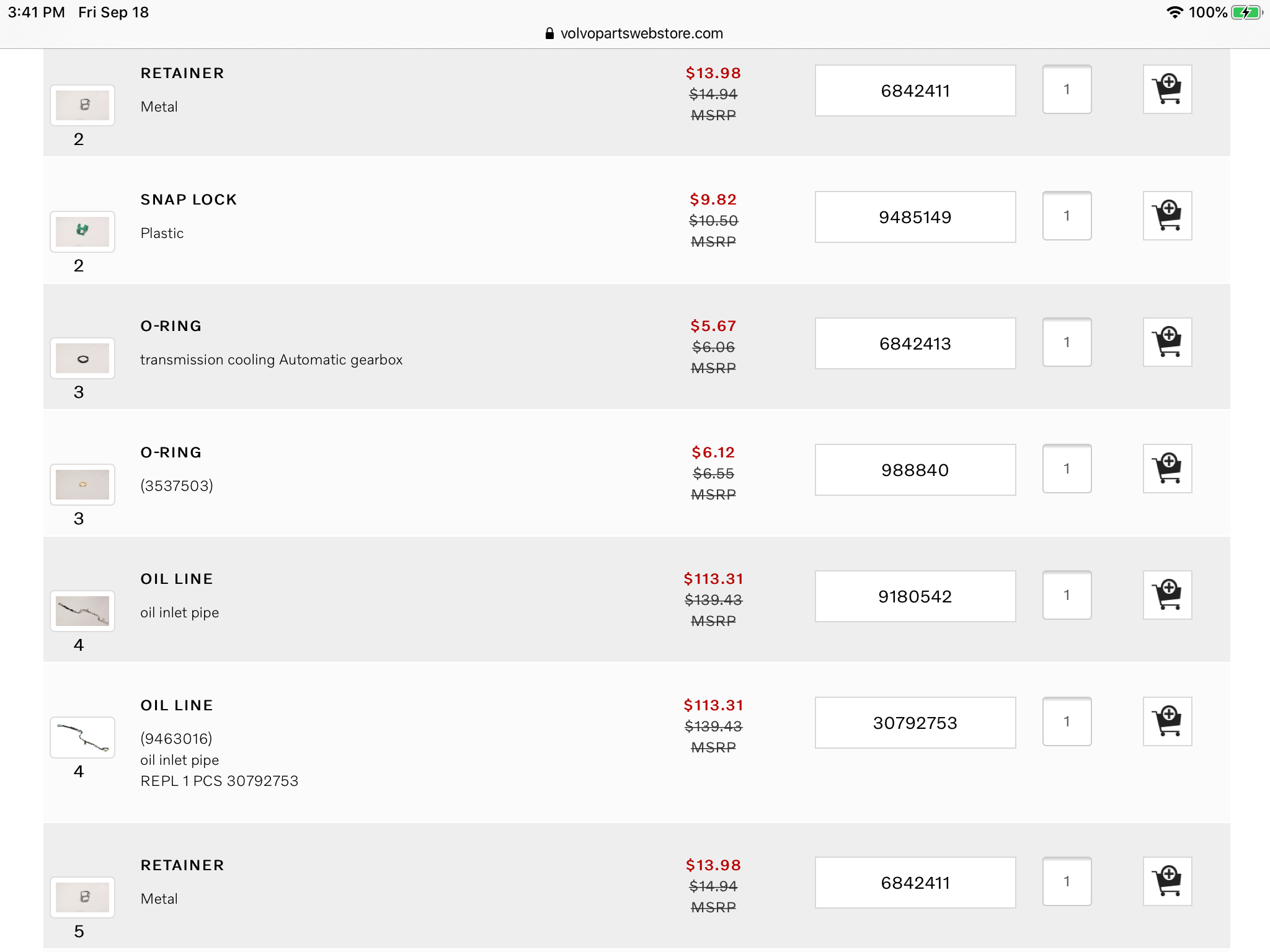 Retainer 6842411 for oil cooler, and same fir AT cooler per Volvo web store