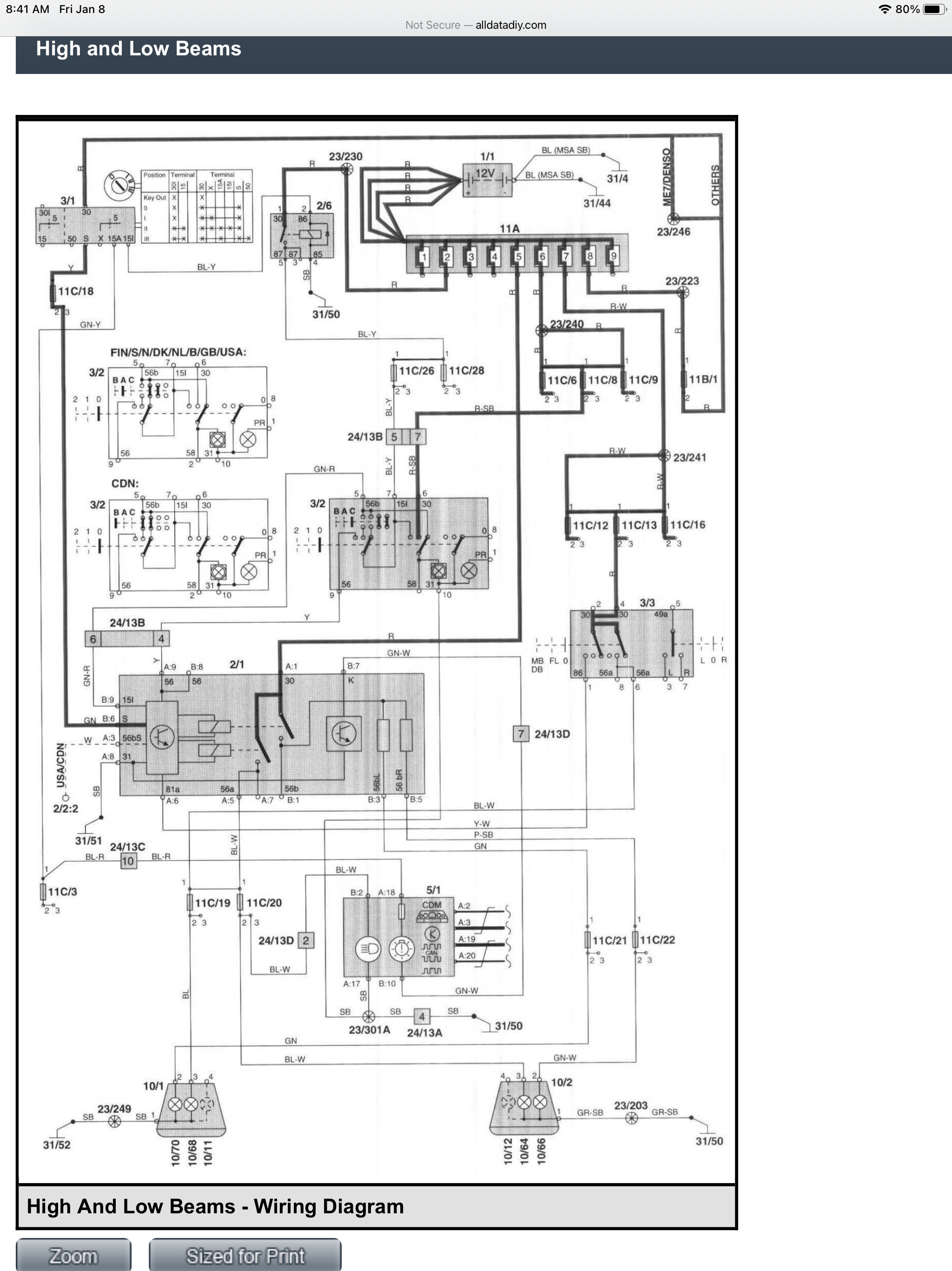 I'm thinking relay, fuse or switch/stalk. I'll be checking the requisite fuses tomorrow. I know it blew an alternator, so it's possible the high got hit if it were engaged at the time.