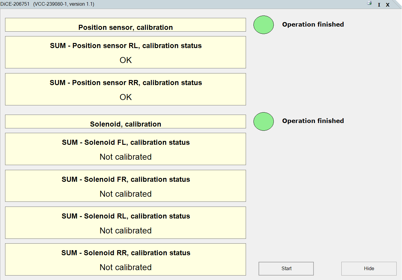 I recently replaced my struts, shocks, and springs on my 2007 Volvo S60 R. Now I need to calibrate the SUM. When using VIDA, I am able to reach the calibration screen, but I can't seem to complete a calibration. I have the engine running, and the car is unloaded. But in the bottom section, the solenoids always reports hyphens (-----------) or "Not calibrated." Here's a screenshot: