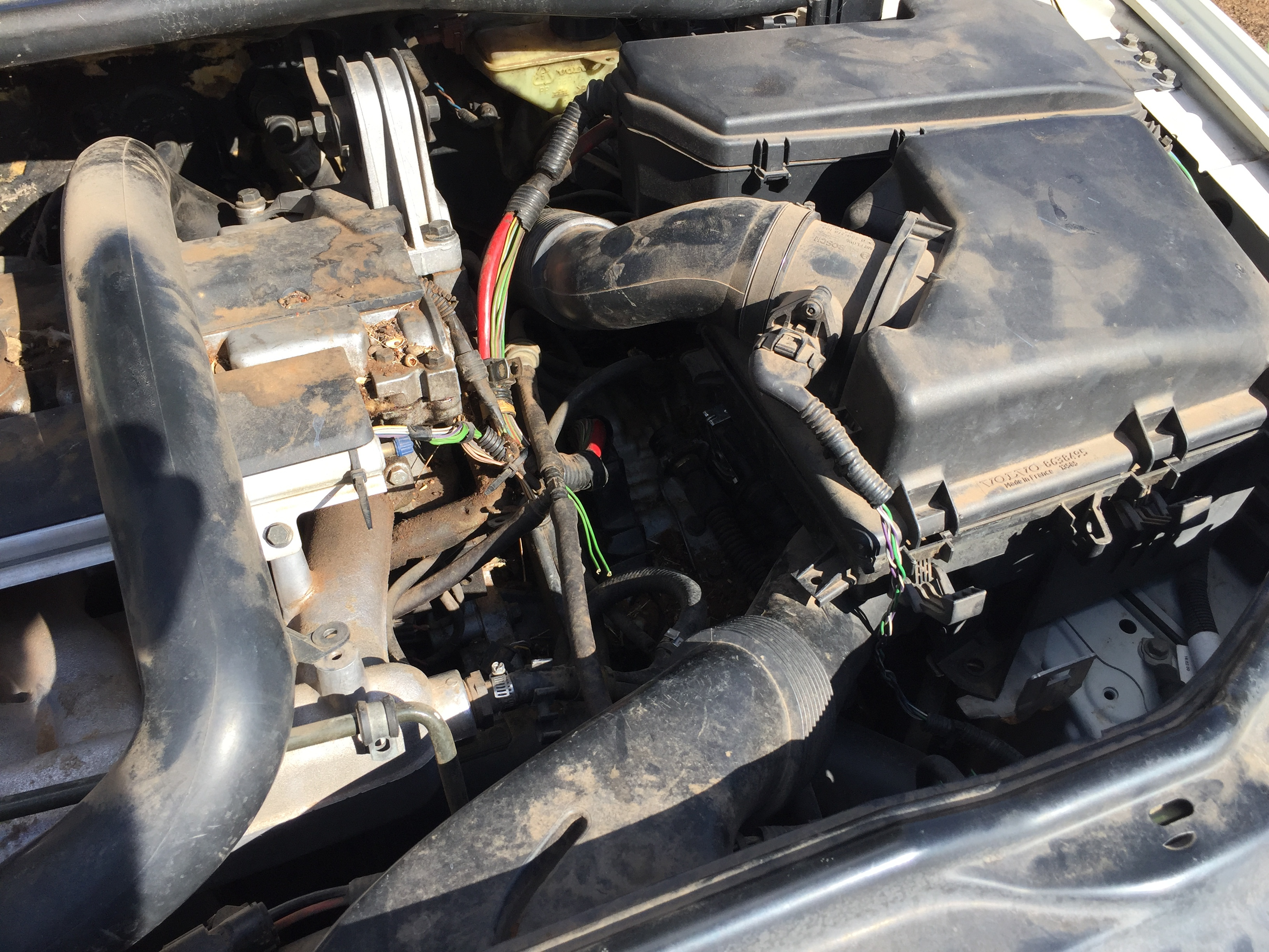 I tracked down the owner of an abandoned v70, and in short, he gave it to me. Someone began stripping it, and piecing the puzzle back together I noticed two cut green wires and three hoses (vacuum lines?), and a couple places to bolt something down. The void is where a throttle body would go, between the engine and airbox, drivers side, but it’s turbo so I don’t think I need one of those. Does anyone know what would go there? Oh, and there is no key, so that’s another thing.