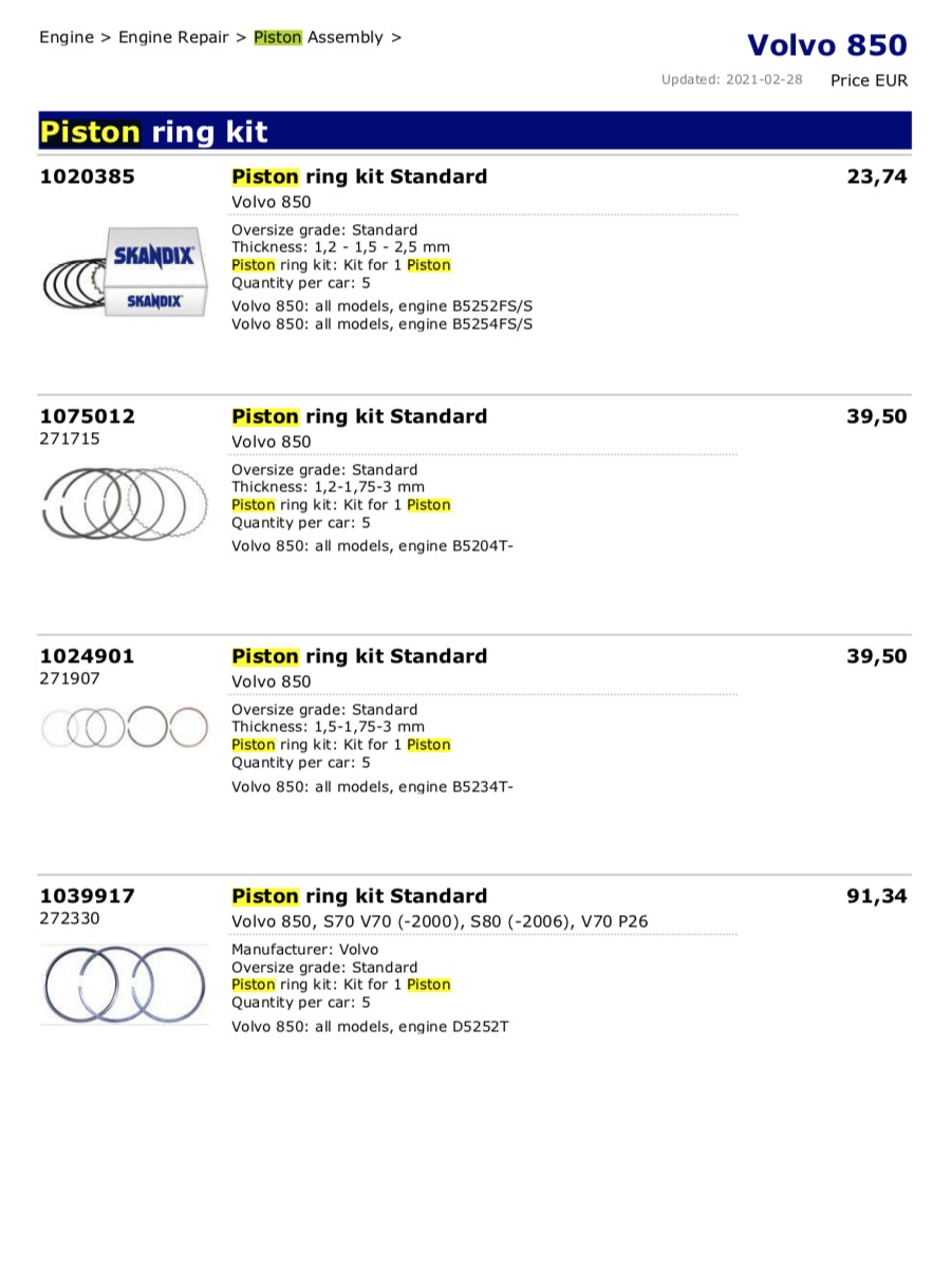 Finding rings is not a problem, but pistons for pre-2000 engines are rare.