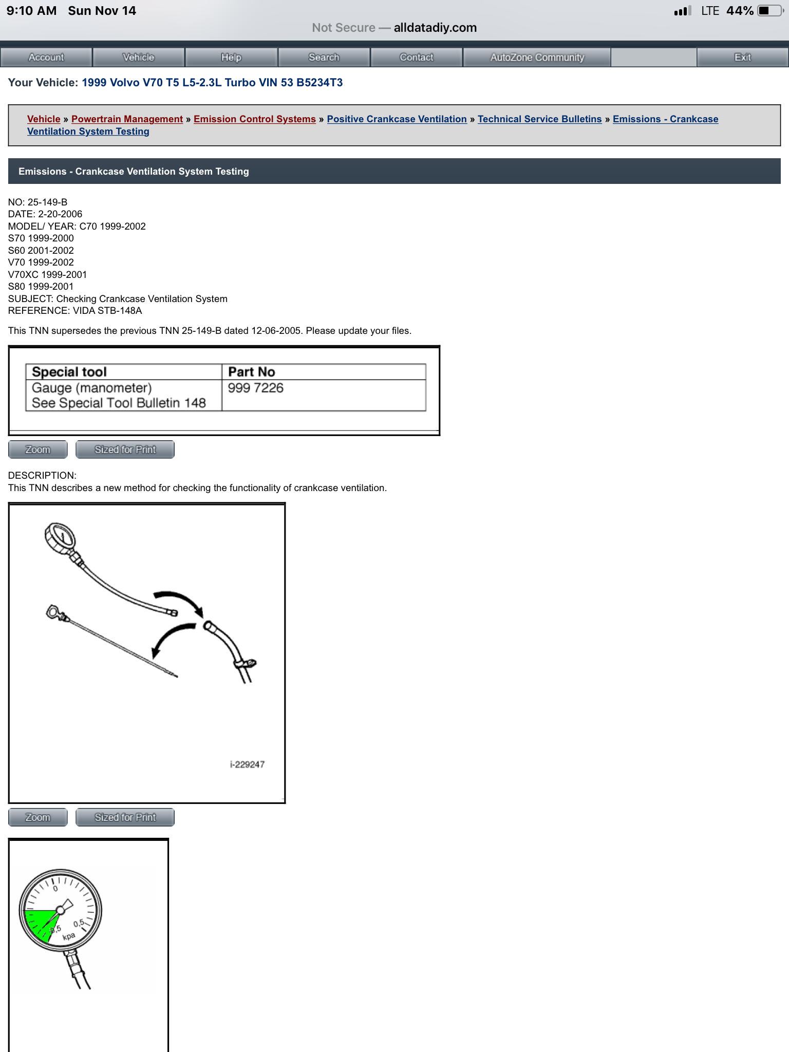- Year and Model: 99: V70s S70s,05 V70
