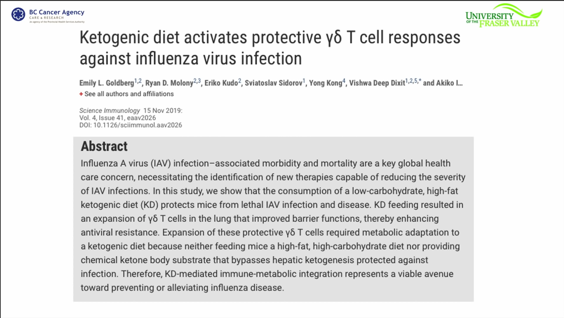 Ketosis Protects Mice From Lethal IAV Infection & Disease