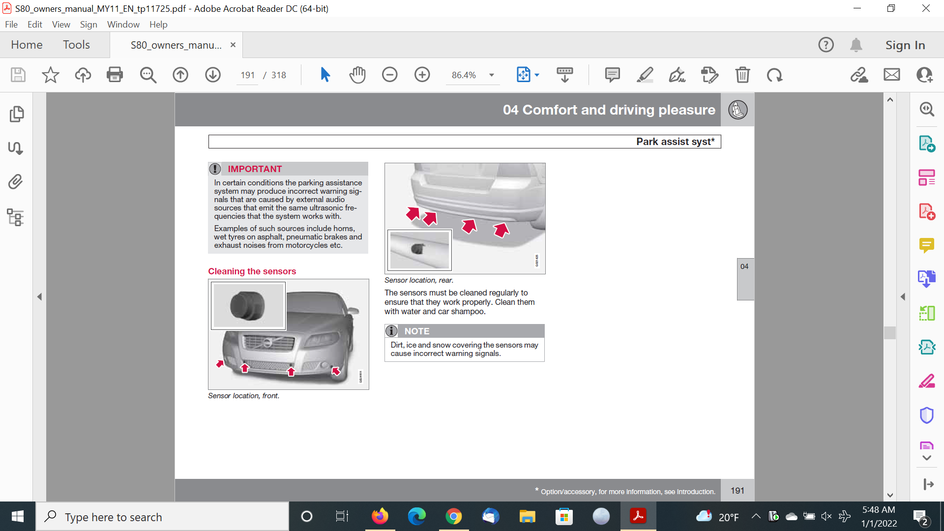 it a new car that i got it might have had a front bumper replaced . its s80 2011 . is there a way to know if the front sensors were there ? also how to know if it were 2 or 4 sensors ? and which wiring and sensor codes should i get to replace them if this will resolve the issue.
