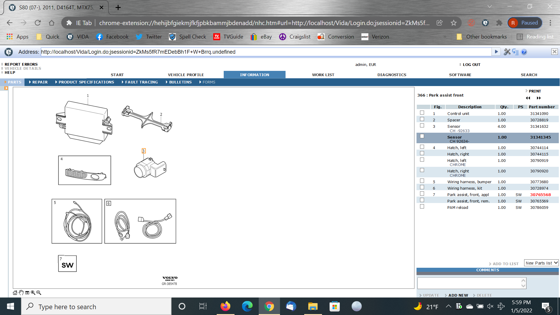 So far it looks like you need harness 31296350 ~$40.00. One sensor 31341345 ~$75.00 for Genuine Volvo as Low as $13.00 for aftermarket. But hold off ordering anything until you check out the control module. It sure does look like somebody replace some stuff on the front without paying attention to details.