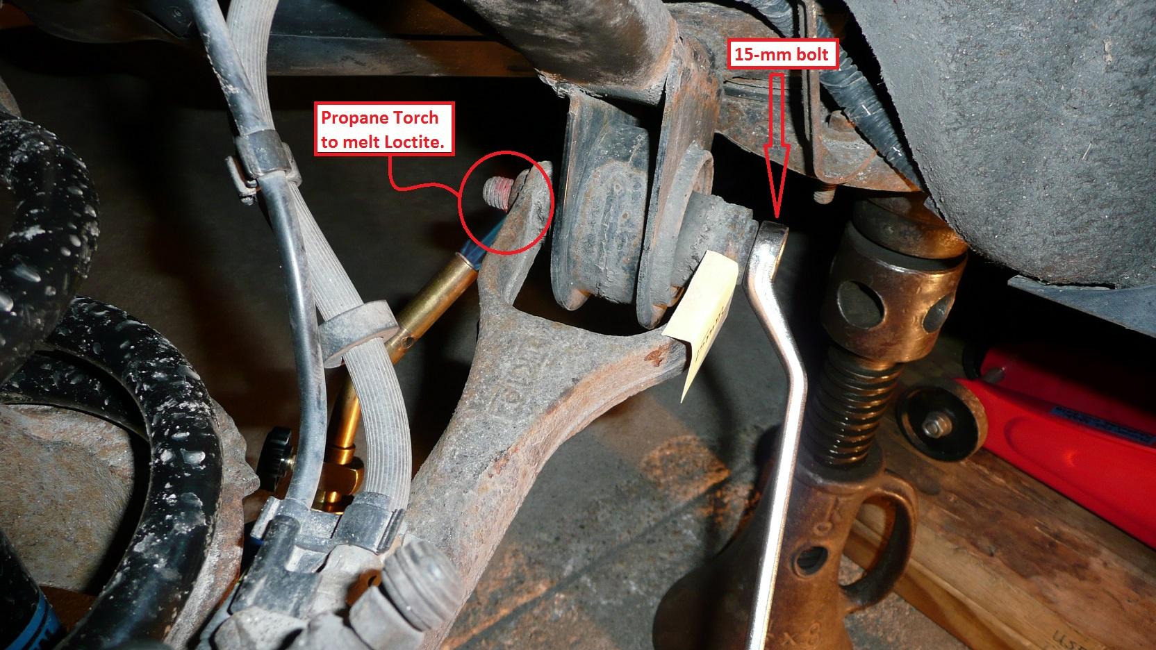 - Propane Torch ($15 at hardware store) is a MUST, this allows you to remove the seized bolts/nuts with much less effort.