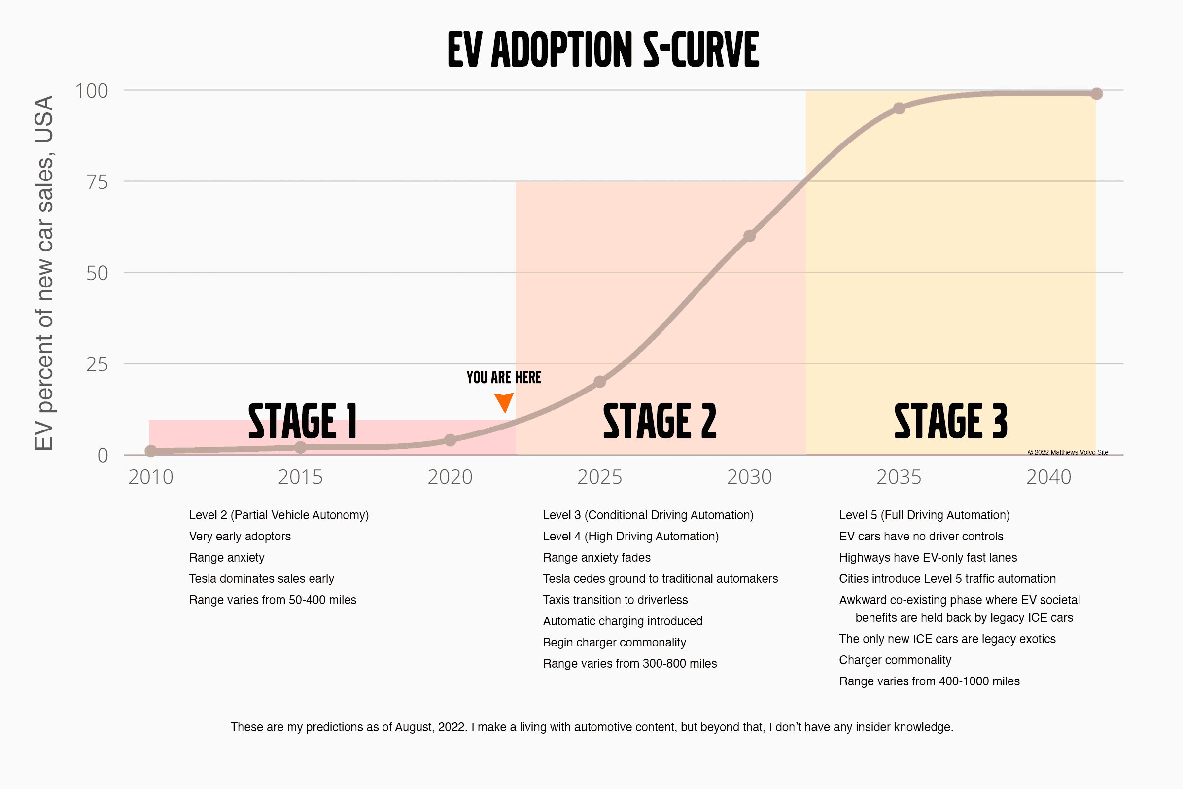 In this chart I make some educated guesses on what the near-future of the electric vehicle looks like, based on where we’ve been.