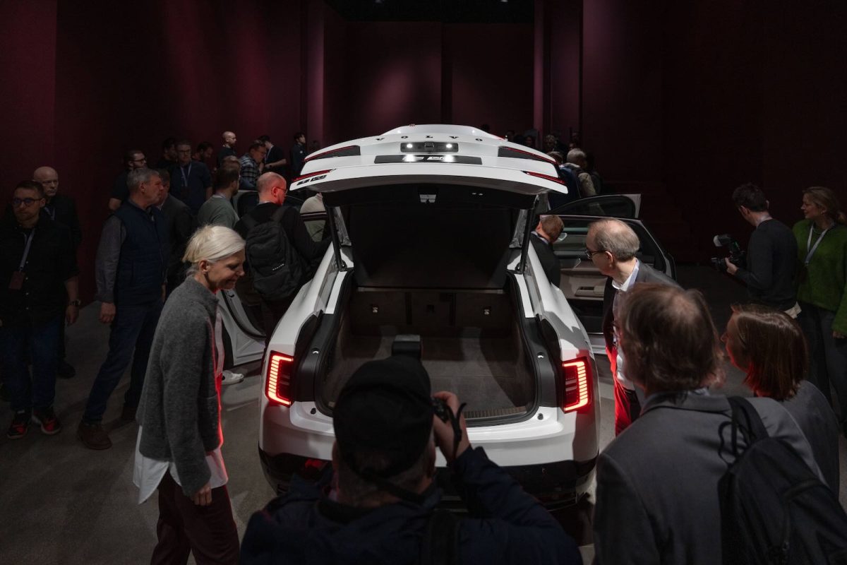 The exterior features a distinctive profile, Thor’s Hammer headlights, and C-shaped LED rear lamps, which you also might view as brackets “[ ]”. It provides 424 liters of cargo space, expandable to 733 liters, plus a 22-liter frunk. Inside, a long wheelbase means generous legroom, paired with premium materials, a panoramic roof, and a quiet cabin. Options include a Bowers & Wilkins sound system with Dolby Atmos and a Google-built infotainment system on a 14.5-inch screen.