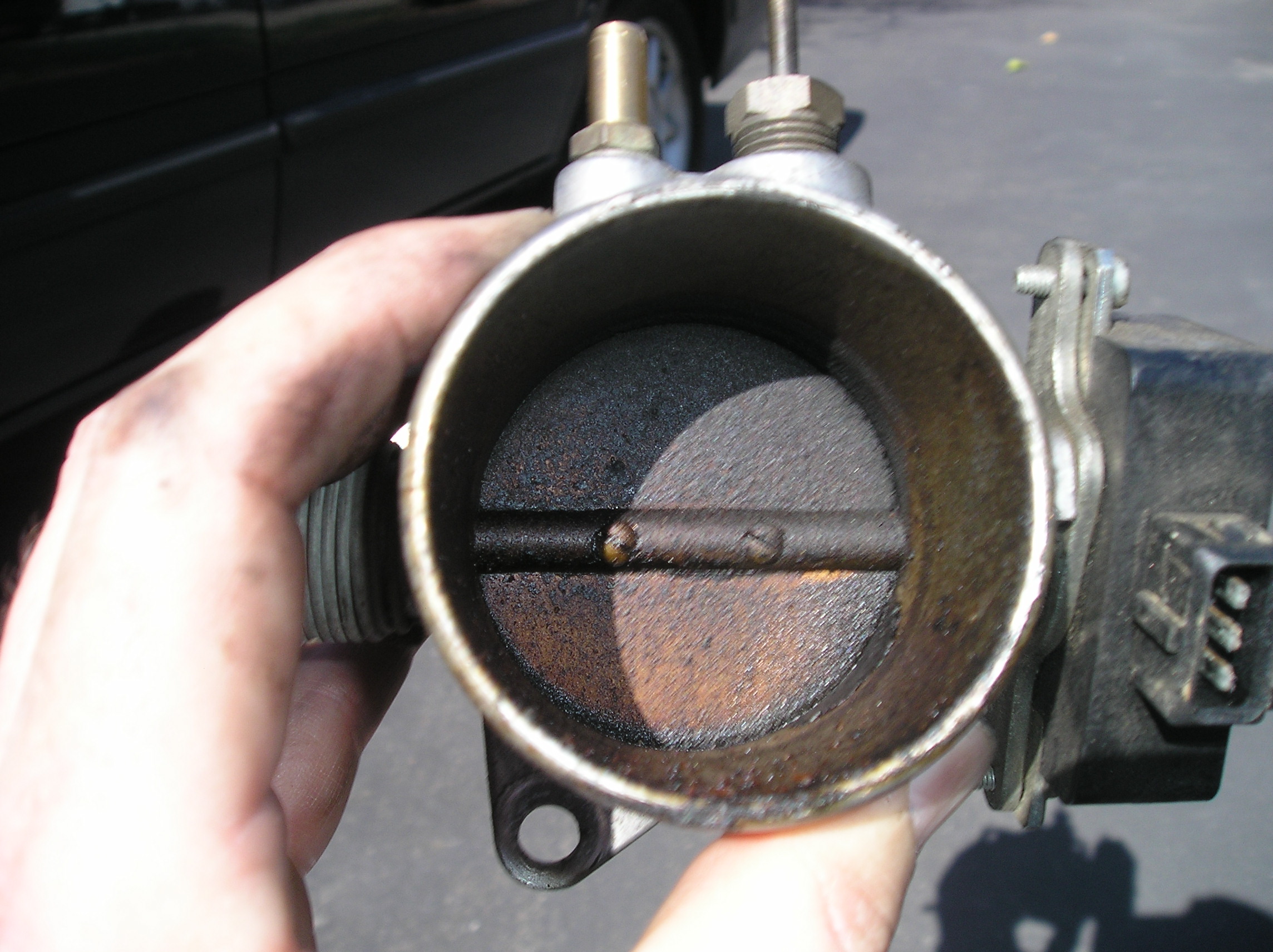 writer100 » My efforts to improve the durability and drivability of this 16 year old car continue. Today I cleaned the throttle body. As you all know, modern cars route blowby exhaust gases back into the intake in order to burn them. This causes coking in the throttle body which must be periodically cleaned. This is an easy service requiring few tools and is suitable for a beginner.