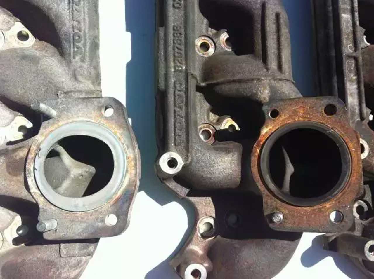 MVS Contributor DragosGD posts a nice collection of photos of Volvo whiteblock 5-cylinder exhaust manifolds — “R” manifold – 30637921, “Japan” manifold – 9207688, and stock 1998 turbo.